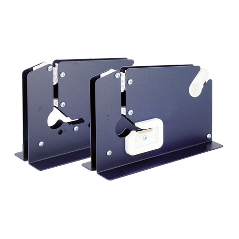 Sigillattrice in metallo per sacchetti. Utilizza rotoli di nastro adesivo larghezza 9mm e 12mm, completo di cutter per il taglio della parte eccedente del sacchetto e, fori sulla base per eventuale fissaggio sul piano di lavoro.