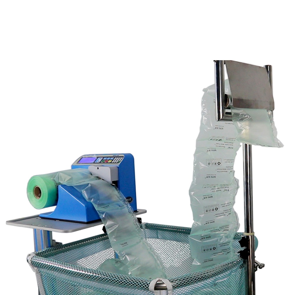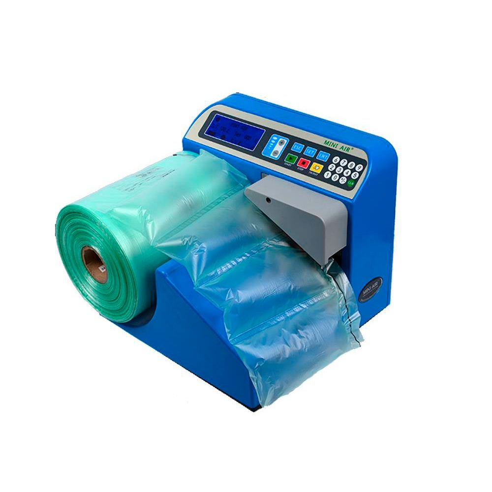 Macchina Mini Air Professional per produzione di cuscini ad Aria Macchina ideale per consumi frequenti di cuscini ad aria Molto performante: velocità 12 m al minuto Si utilizza con bobine da 20 my da 450 e 700 m La macchina Mini Air Professional è la soluzione ideale per tutti coloro che necessitano abitualmente di cuscini ad aria per colmare gli spazi vuoti all’interno delle scatole oppure di tappeti ad aria per proteggere i prodotti all’interno delle scatole.