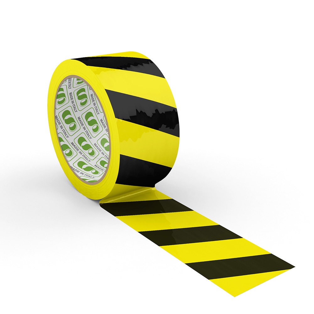 Nastro adesivo per marcatura e delimitazione spazio. Aderisce perfettamente a numerose superfici.